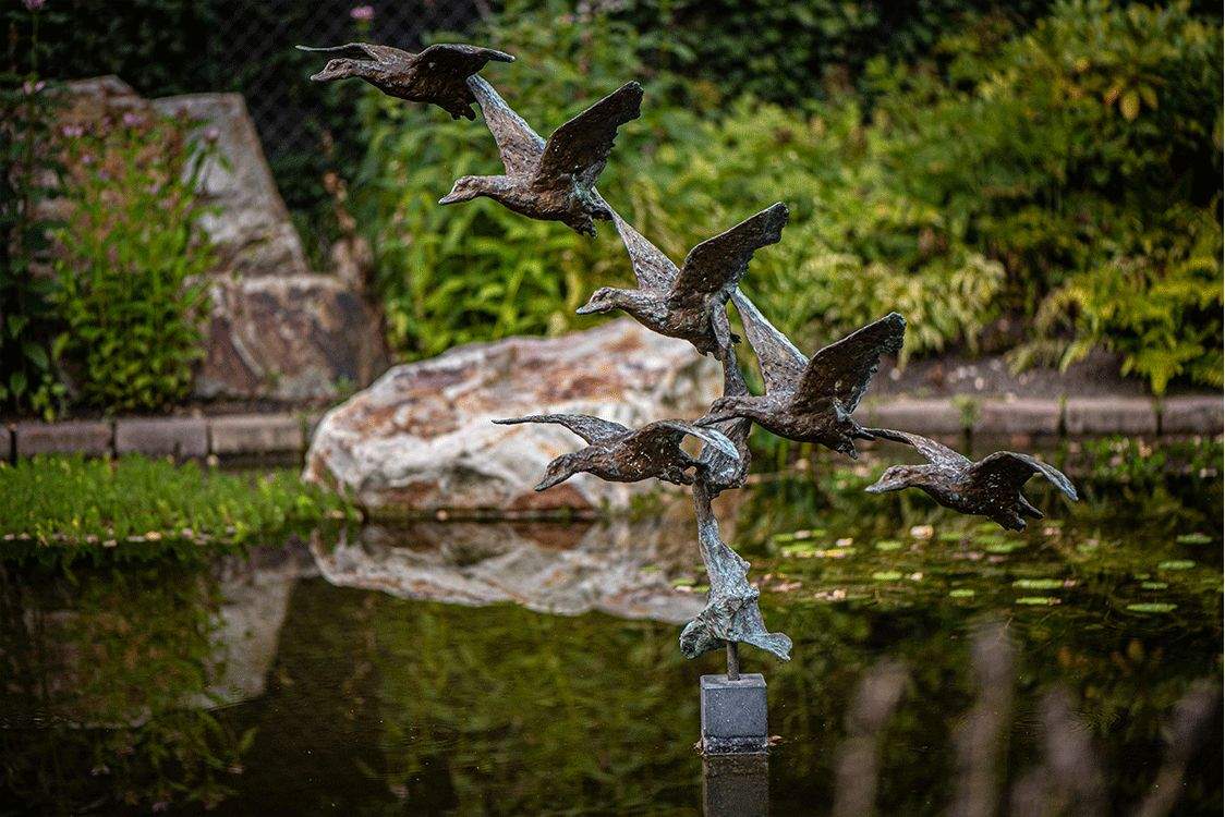 Het water speelt een belangrijke rol in deze tuin. Het vormt de verbinding van alle elementen in de tuin. Daarnaast zijn er twee grote beeklopen die de vijver in stromen. Het geluid en de uitstraling van deze natuurlijke beeklopen zorgt voor het ultieme tuingevoel.